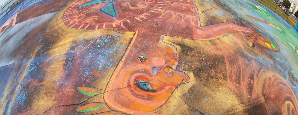 Process: I use a lot of different materials so that determines the process. For example, if I’m chalk drawing for a school, I work out the design, show up early to school to get the beginning drawing started, present an assembly to the entire school. I have up to 650 children come out on the playground to draw with me throughout the day, then stick around after school is over and add final touches to get a good photo, some of the best by drone (mavic air).