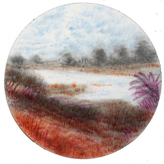 SC: Currently my studio is in Santiniketan. I collect my data and visuals from my field visits. I make drawings in the sketchbooks that I carry. After coming back to my studio I develop works from them. Lately, I have been doing a lot of plein-air nature painting. In my canvas and paper paintings, I use materials like coal dust, brick dust, marble dust, sand along with more conventional mediums like charcoal, graphite, dry pigments, dust colours, ink, water colours and acrylic paint. I like to use the natural ingredients directly on the surface as they reflect the atmospheric nature far more convincingly. My sculpture works are carved out of solid blocks of coal. They offer the real feel of the original landscape. There are also some experimental works that I’ve made by exposing paper to toxic underground gas in a coal mine. In this way I’ve let nature participate in my art-making process.