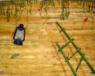 I know why I painted heritage buildings, why I paint wood textures, interior of houses and work with gunny rag impressions (a product of a tree). Painting my memories gives me happiness. Tiny colourful creatures liven up my canvas and make my life colourful too.
