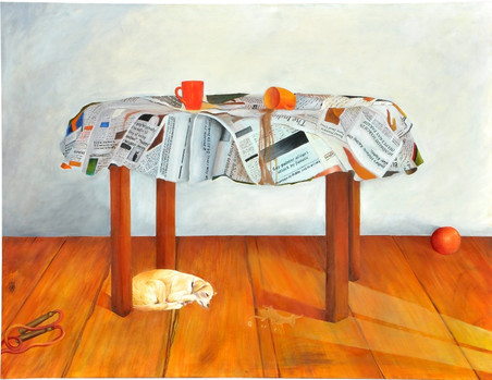 Newspaper series of works, various sizes, Oil on canvas works and at times Mixed Media works