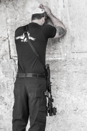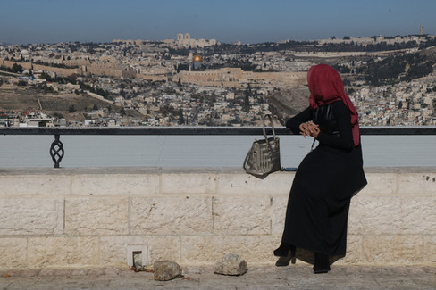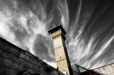 For Arya, then, the soft Jerusalem stone is a visual metaphor, symbolizing and reaffirming its significance in shaping and building the city of Jerusalem. In his work he provides an amazing interplay of the colour black against the light-toned backdrop of the soft, textured Jerusalem Stone – the black clothing of Jewish men with their typical hats casting dark grey shadows on stone slabs and the Wailing Wall; the bottom half of a woman dressed all in black. With the photographer's trained eye, he captures a flying white pigeon casting a black shadow on the wall. Even when shooting a colourfully painted wall, he frames the image with the jutted wall edge with alternating recessed slabs made of Jerusalem stone in the left foreground and a building on the other side (see the photo at the bottom left).